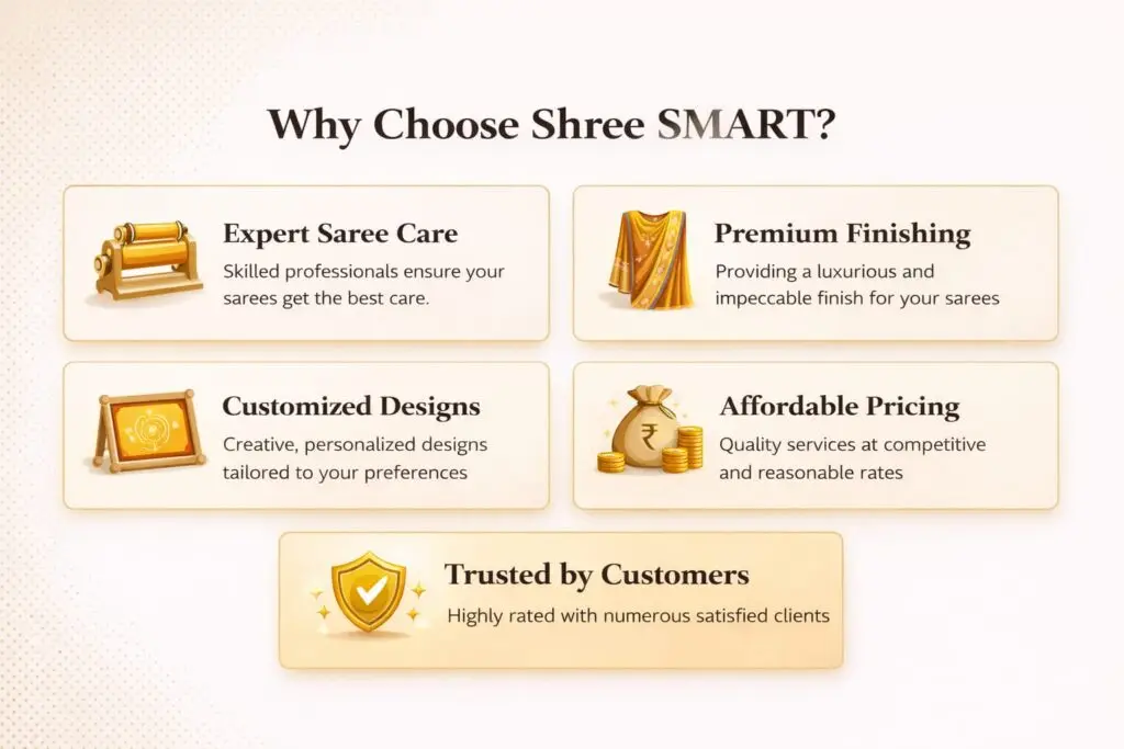 Enhance the beauty of your sarees with our expert care. creativity and premium finishing